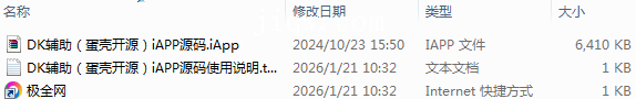 【极全网】DK辅助(蛋壳开源)iAPP源码目录1个子文件夹0个文件3个