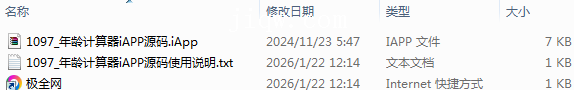 【极全网】1097_年龄计算器iAPP源码目录1个子文件夹0个文件3个