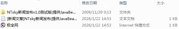 【极全网】[新闻文章]NTsky新闻发布(提供JavaBean)v1.0_ntskynewsv1.0javabean-本地下载目录1个子文件夹1个文件2个