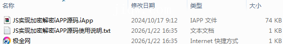【极全网】JS实现加密解密iAPP源码目录1个子文件夹0个文件3个