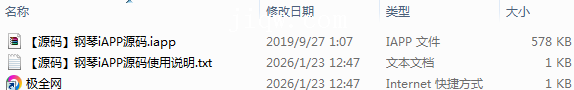 【极全网】【源码】钢琴iAPP源码目录1个子文件夹0个文件3个