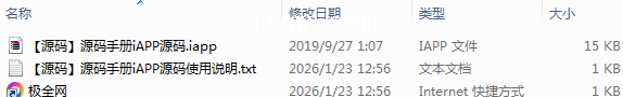 【极全网】【源码】源码手册iAPP源码目录1个子文件夹0个文件3个