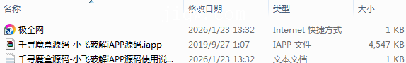 【极全网】千寻魔盒源码-小飞破解iAPP源码目录1个子文件夹0个文件3个