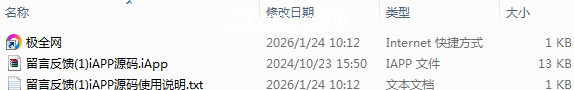 【极全网】留言反馈(1)iAPP源码目录1个子文件夹0个文件3个
