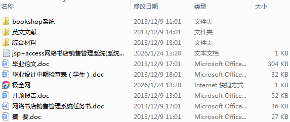【极全网】jsp+access网络书店销售管理系统(系统+论文+开题报告+任务书+摘要+英文文献)-本地下载目录1个子文件夹3个文件7个
