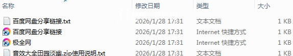【极全网】音效大全田园淡幽.zip目录1个子文件夹0个文件4个