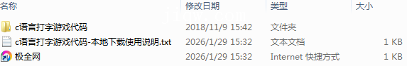 【极全网】c语言打字游戏代码-本地下载目录1个子文件夹1个文件2个