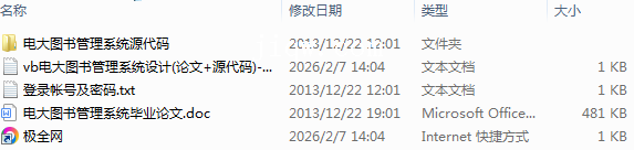 【极全网】vb电大图书管理系统设计(论文+源代码)-本地下载目录1个子文件夹1个文件4个