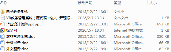 【极全网】VB教务管理系统(源代码+论文+开题报告+外文翻译+答辩ppt)-本地下载目录1个子文件夹1个文件6个