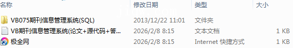 【极全网】VB期刊信息管理系统(论文+源代码+答辩PPT)-本地下载目录1个子文件夹1个文件2个