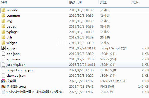 极全网】企业名片小程序静态-.纯前端静态小程序源码目录1个子文件夹7个文件9个