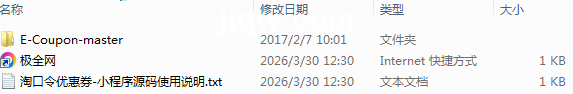 极全网】淘口令优惠券-小程序源码目录1个子文件夹1个文件2个
