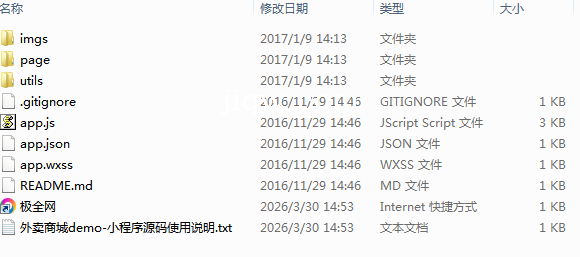 极全网】外卖商城demo-小程序源码目录1个子文件夹3个文件7个