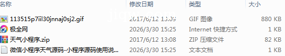 极全网】微信小程序天气源码-小程序源码目录1个子文件夹0个文件4个