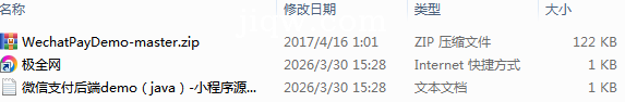 极全网】微信支付后端demo(java)-小程序源码目录1个子文件夹0个文件3个