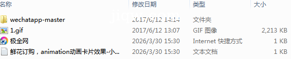 极全网】鲜花订购,animation动画卡片效果-小程序源码目录1个子文件夹1个文件3个