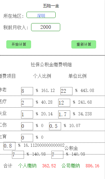 五险一金计算-小程序源码