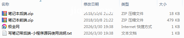 极全网】写笔记带后端-小程序源码目录1个子文件夹0个文件4个
