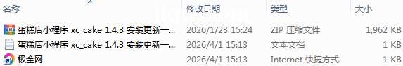 极全网】蛋糕店小程序 xc_cake 1.4.3 安装更新一体包目录1个子文件夹0个文件3个