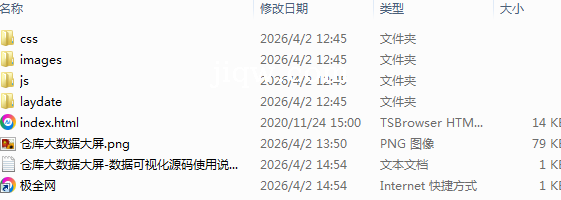 极全网】仓库大数据大屏-数据可视化源码目录1个子文件夹4个文件4个