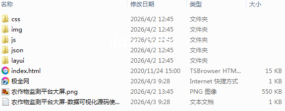 极全网】农作物监测平台大屏-数据可视化源码目录1个子文件夹5个文件4个