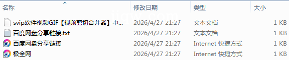 【极全网】svip软件视频GIF【视频剪切合并器】中文电脑版目录1个子文件夹0个文件4个