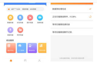 使用步骤,安装打开-点击扫描数据--长按预览,打钩需要恢复的数据>点击恢复。