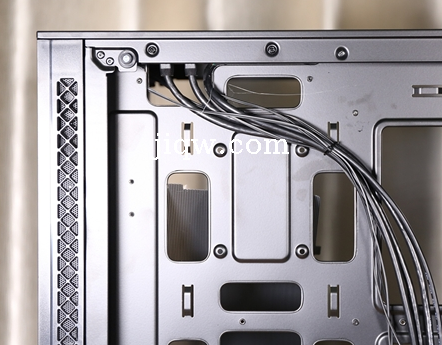 机箱前盖,左侧盖均使用了钢化玻璃材质,前部可以支持280mm或者360mm规格的水冷散热器,并且内部有金属防尘网可以有效的阻绝从外部进来的灰尘。
