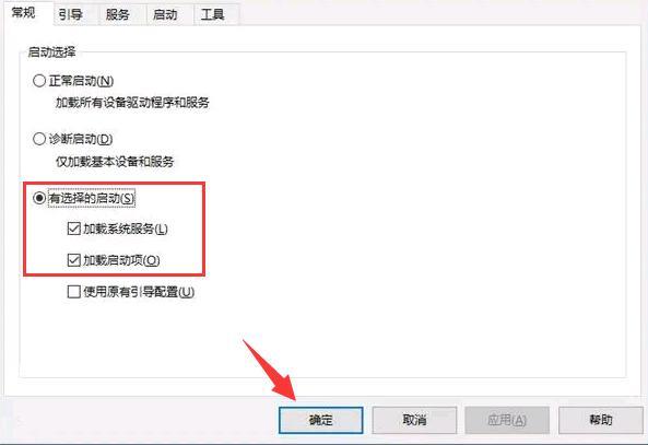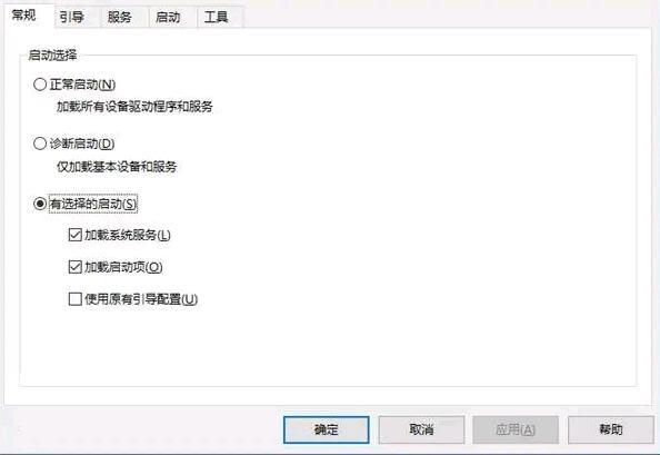3.在常规选项卡界面,选中“选择性启动”项,点击确定