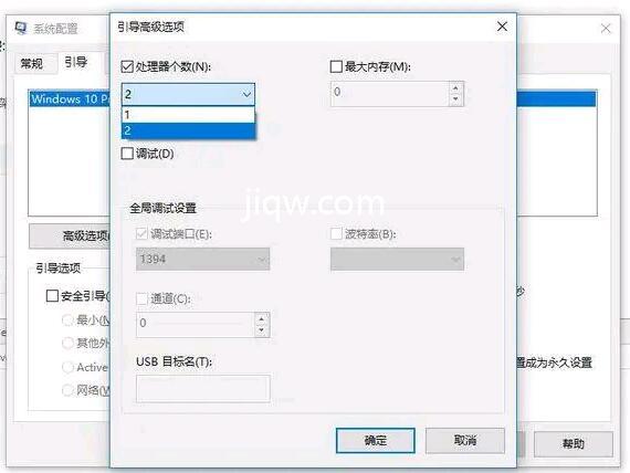5.然后单击高级选项,检查处理器数量,并将处理器数量设置为2。