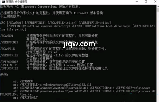 方法一、应用sfc verifyonly命令查验修复系统