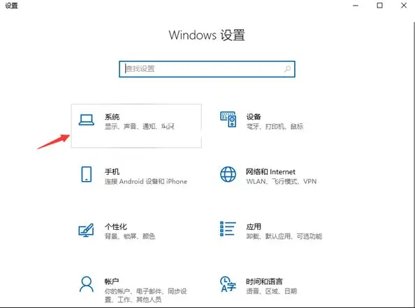 2、由于分辨率归属于显示设置,大家必须在设置菜单选择系统一栏,点击查看设置界面。