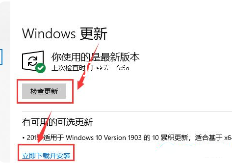 2、点一下【查验升级】,如果有新补丁包下边会出现提醒。立即选择【马上下载并安装】就可以。