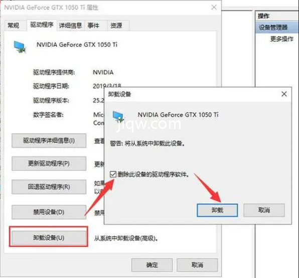3、点一下下边的卸载机器设备,启用删除此机器设备的驱动程序软件勾选框,点一下卸载就可以。