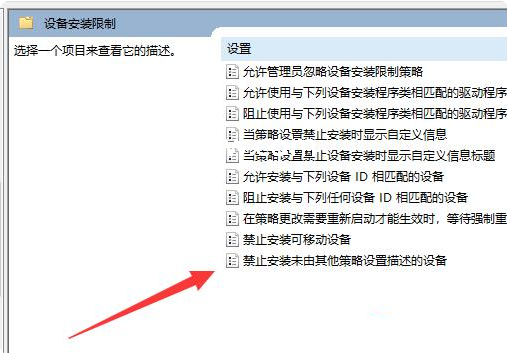 4、双击鼠标最下边的“严禁安装未由别的对策设置叙述的机器设备”。
