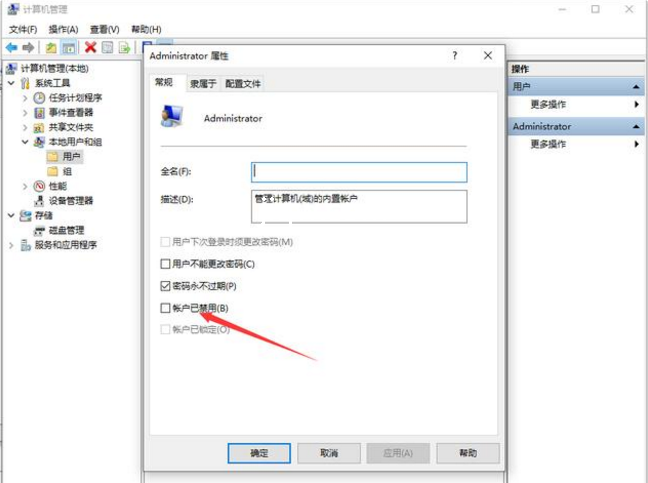 5、去掉帐户已禁用前边的勾就可以,进入下一步。