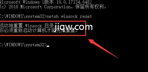 3、等候重置进行,提醒取得成功后关闭命令提示符。