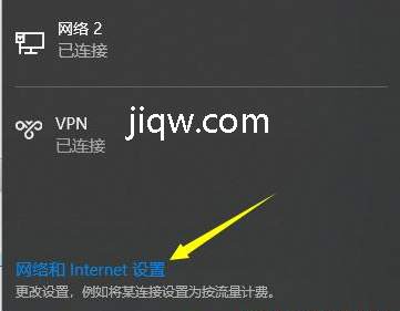 1、点一下桌面上右下方网络图标,选择“网络和Internet设置”;