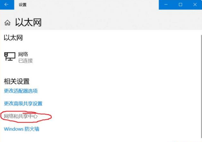 2、点一下“以太网接口——网络和共享管理中心”,进到“网络和共享管理中心”。