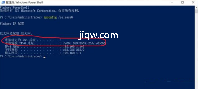 点一下回车,查看并释放出来当地ipv6连接地址。