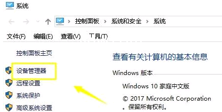 2、在属性界面点击设备管理器。