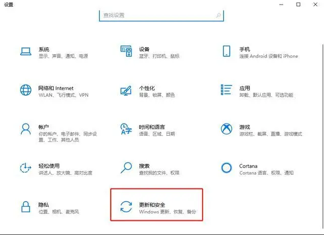 1、电脑上开机进到系统后,大家按快捷键 Win I 开启设置界面,随后选择“升级和安全” 如下图所示: