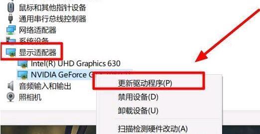 3.找到“显示适配器”,单击下拉按钮,右键单击显卡并选择“更新驱动程序”。