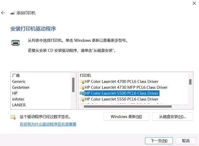 7、然后点一下“下一步”会弹出安装打印机驱动程序窗口,在左边的生产商窗口中选择打印机的生产厂家,在右边目录中选择打印机的型号规格。