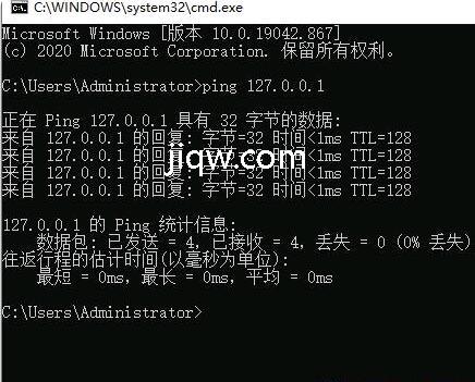 (环回地址)检查网卡是否正常。如果出现图中所示界面,则证明网卡正常。