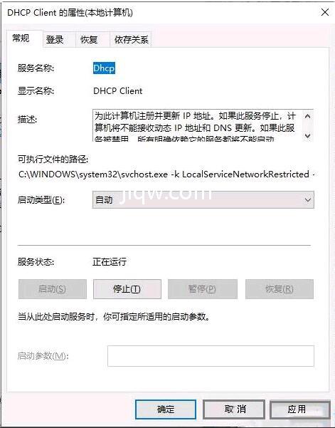 点击“确定”打开“服务(本地)”窗口——,在右侧窗口——中找到“DHCP客户端”服务,双击打开服务——,将“启动类型”设置为“自动”——,点击“服务状态”下的“启动”