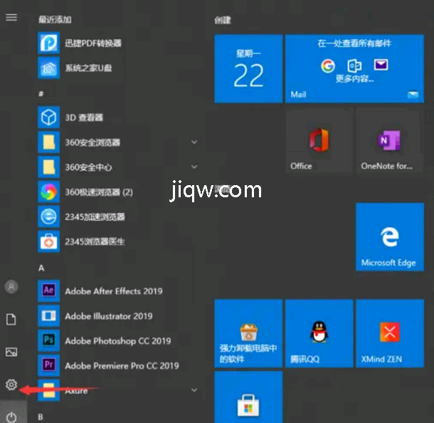1.点击开始菜单,点击设置图标,进入设置界面。