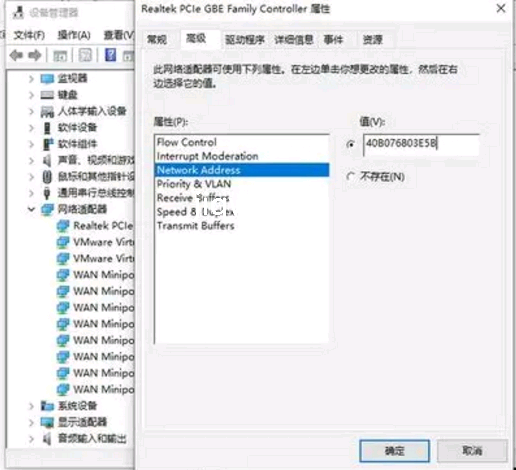 4、下面大家来改动机器码,右键计算机-机器设备管理器-网络电源适配器-右键-高级,寻找:网络地址-填写刚查询的机器