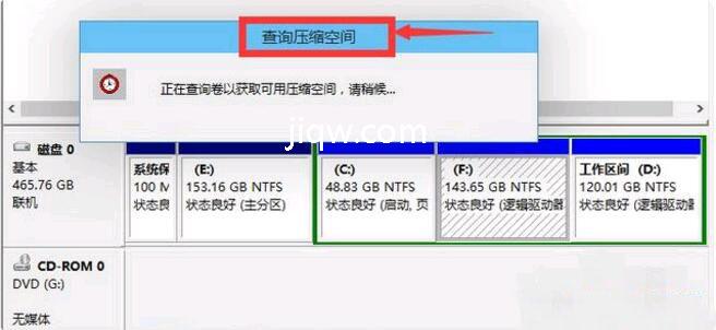3.然后系统会自动查询压缩空间,这个时间要看电脑的配置。