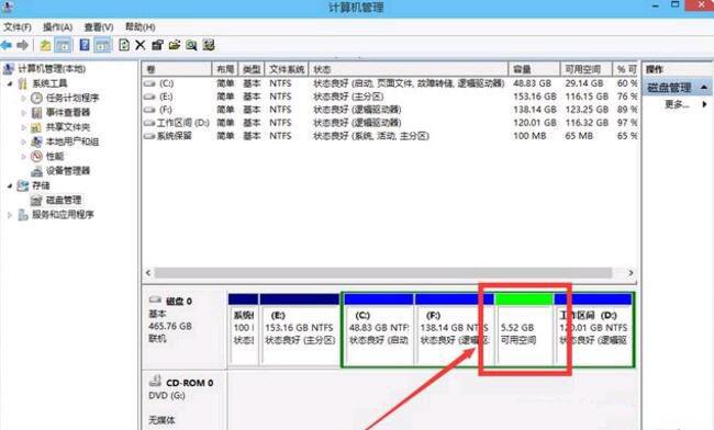 5.等一下,空间就压缩了。将出现如图所示的可用空间。这是我们刚刚压缩的空间。